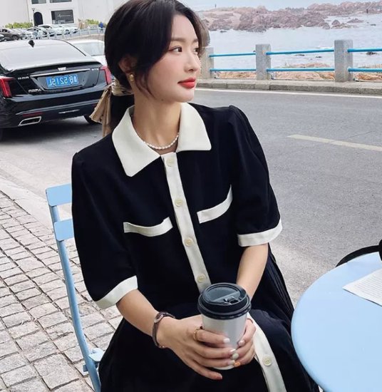ゆったりとしたディテールで体型カバーも◎コントラストカラーのデザインがおしゃれな一着。