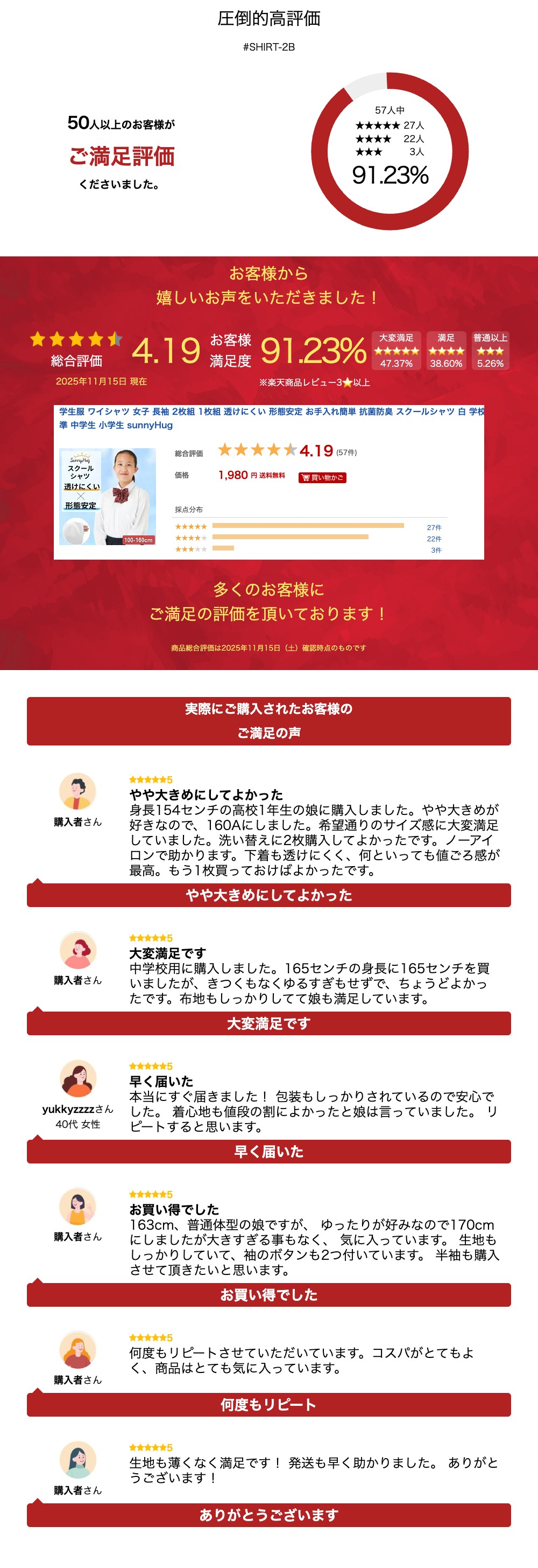 【Amazon日本ストアCM出演ブランド】 SunnyHugの学生服 ワイシャツはお手入がしやすく2枚セットも販売しているので洗い替えに最適です!生地、色、サイズ共に学校指定に合わせて作っているので自信を持ってオススメします。