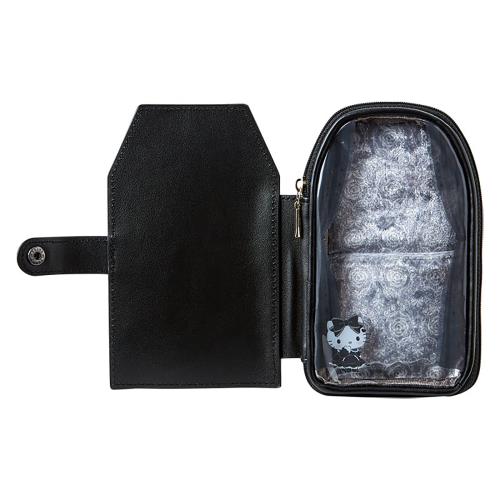 本体サイズ:約幅10×奥行2×高さ15.5cm※金具含まず。主な材料・原料:PVC、PUレザー、ポリエステル フタ:スナップボタン式開閉。本体:ファスナー式開閉。収納可能サイズ:約縦13cm×横7cm以内。内側:オープンポケット2。開閉可能なフタ付きで持ち歩く際は推しを隠すことも見せることも可能。 (C) 2024 SANRIO CO., LTD.