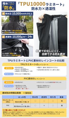✅TPU10000ラミネートの防水力 2025SS新作自転車用レインコート!「耐水圧10,000mmH2O以上」、優れた防水性能TPU防水素材で雨の浸透をブロック!衣服内の蒸れを軽減する上で重要な透湿性もあり、蒸れにくさを実感できるレベルの「透湿度10,000g/m·24hr」を実現しています。