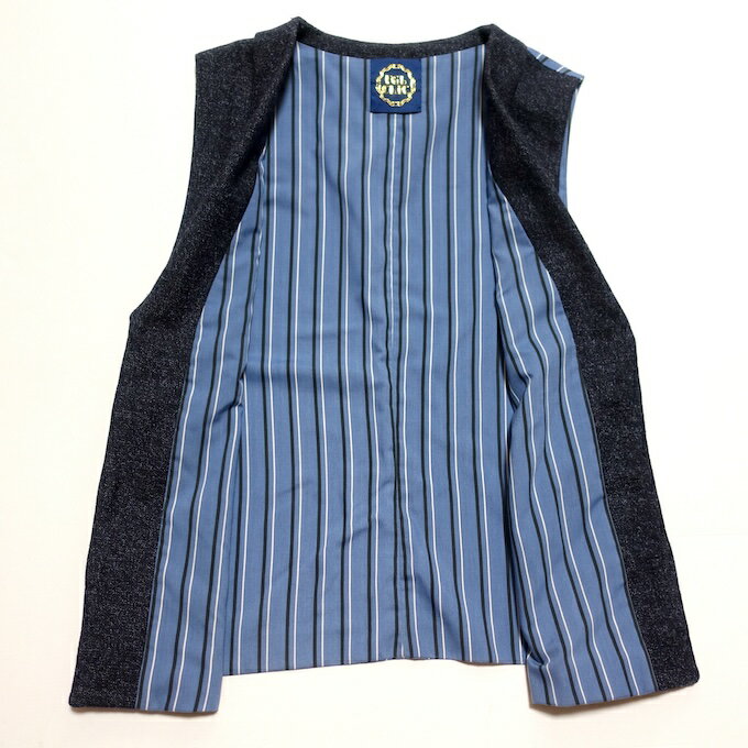 商品名FABCHIC STRIPE VEST ファブシック ストライプ ベストサイズ肩幅:約37.5cm/身幅:約50cm/着丈:約56cm付属品商品のみ状態着用感:小 生地表面に若干の汚れがございます。