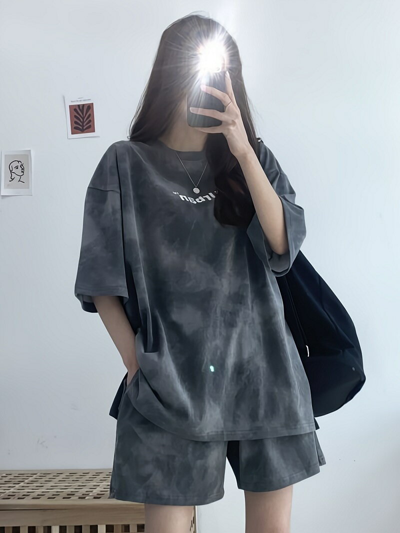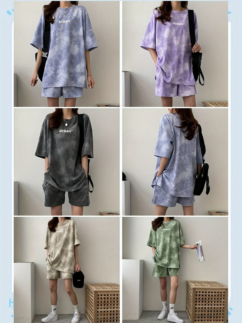商品名レディース 半袖 ルーズフィット セットアップ(トップス+ハーフパンツ) スタイル夏らしいタイダイ柄と柔らかなカラーが魅力のセットアップ。