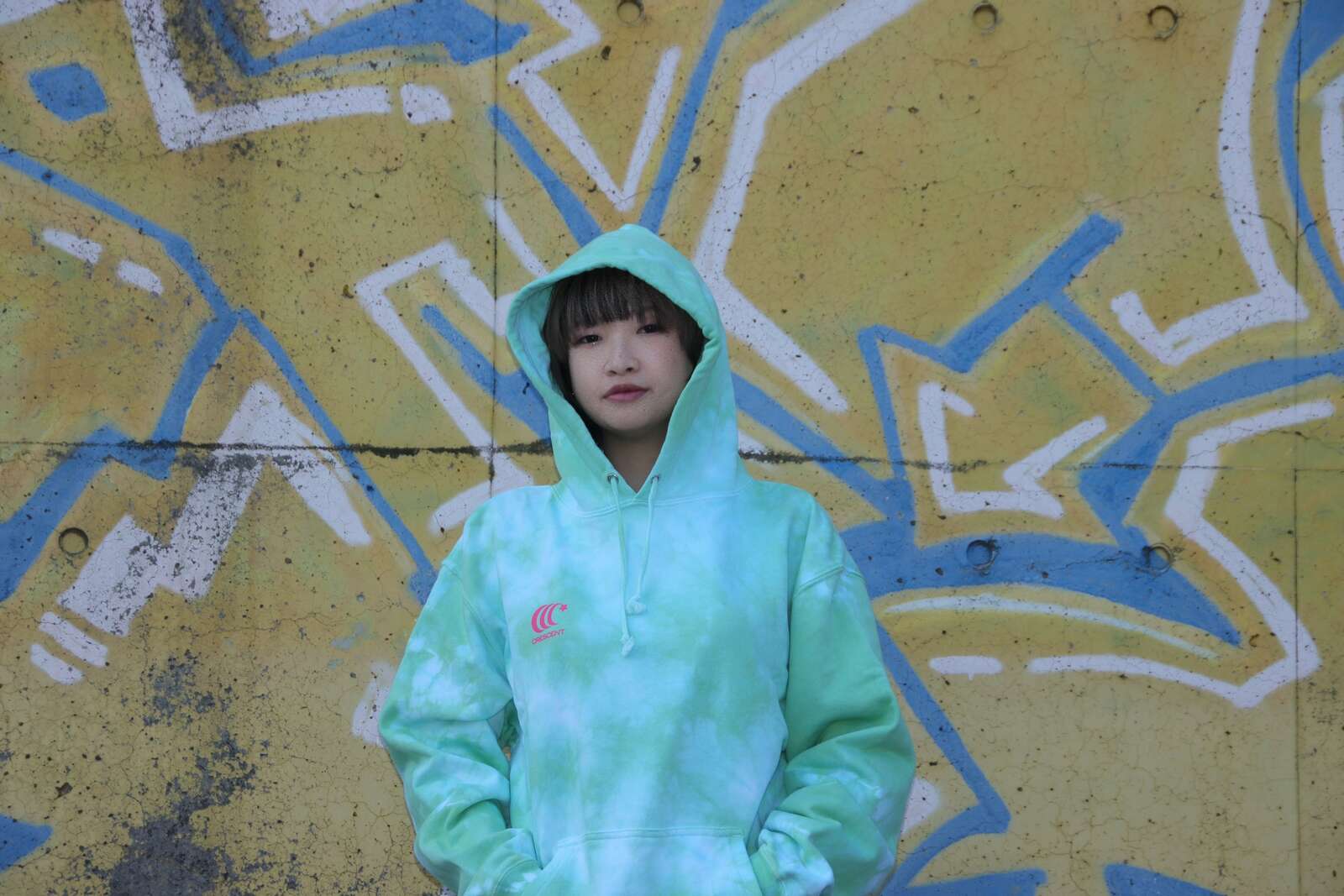 【送料無料】タイダイフードパーカー(グリーン)/Crescent Garage Original Hoodie 2022 2022年タイダイ柄のオリジナルパーカーが登場!クレセントオリジナルロゴ入りパーカー★胸元に蛍光ピンクロゴのワンポイント!ユニセックスサイズとなります。