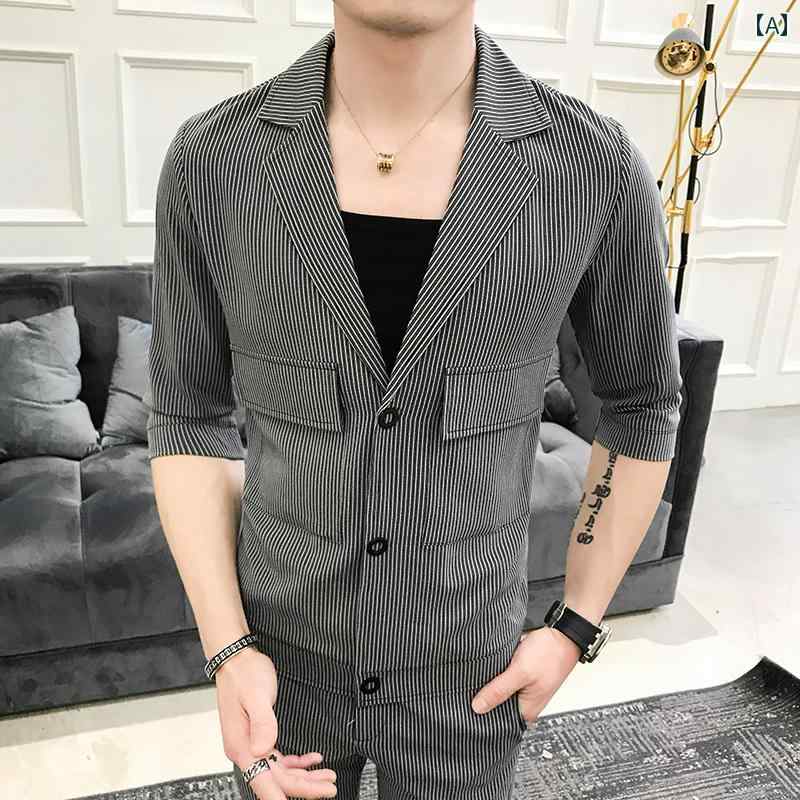 セットアップ メンズ 夏 半袖 韓国 スリムフィット おしゃれ カジュアル ジャケット ボタン ポケット ハーフパンツ 大きいサイズ ストライプ ピンク 黒