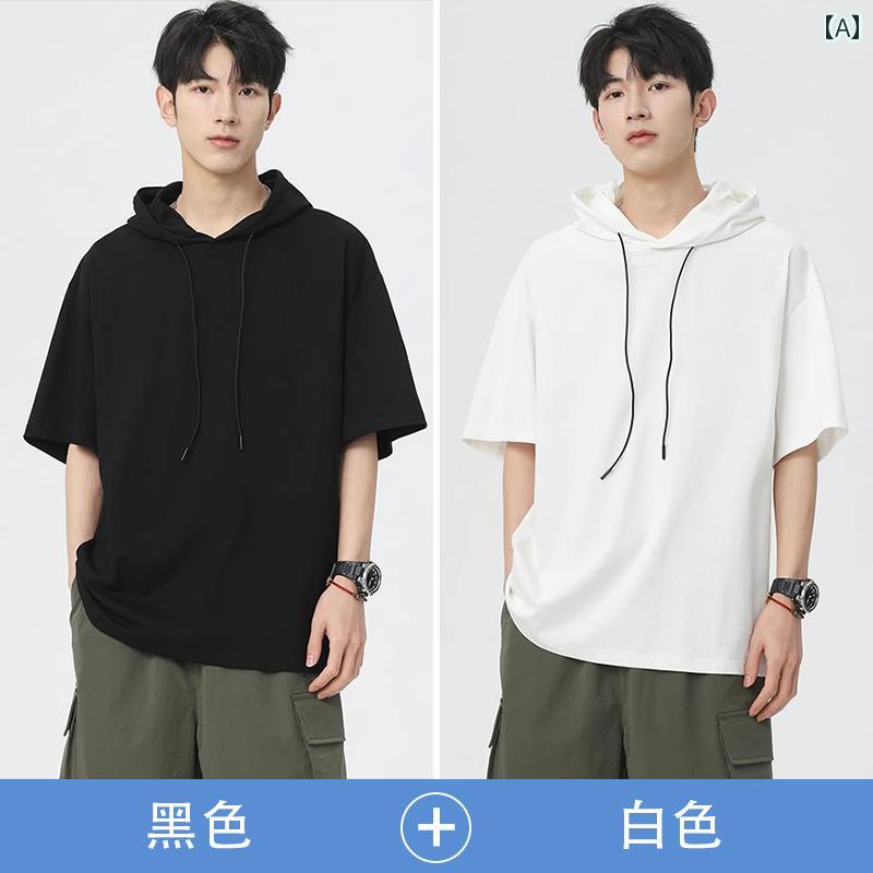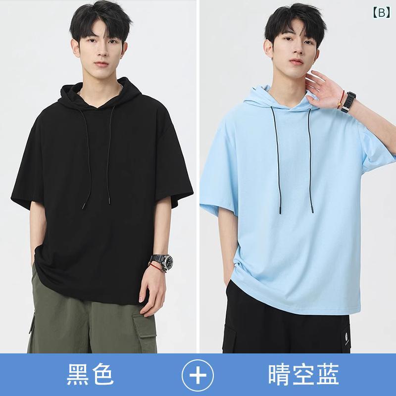 シルエット: ゆったり 加工: イージーケア 素材: ポリエステル 袖タイプ: ドロップショルダー 機能: 速乾性 厚さ: 薄手 袖丈: 半袖 デザイン: フード付き 柄: 無地 サイズ: 3XL.2XL.S.M.L.XL カラー: ブラック.ネイビー.ホワイト.ブラック+ホワイト.ブラック+ブルー.ブラック+ネイビー.ブラック+ピンク.自由な組み合わせ.ブルー.ピンク