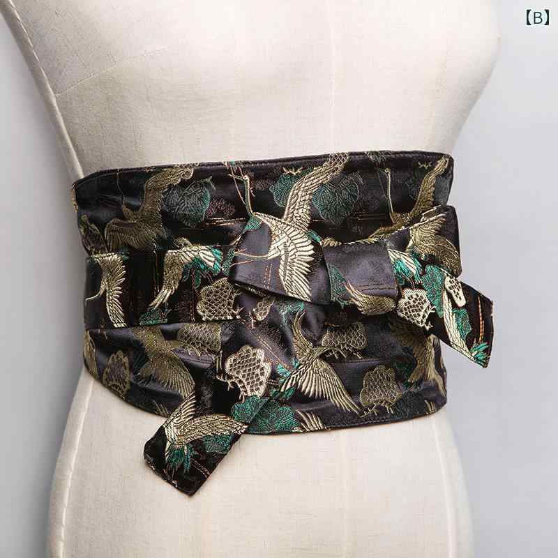 着物 帯 レディース 浴衣 小物 簡単 蝶結び ブロケード 和風 レトロ おしゃれ 華やか 手洗い可 鶴 ベージュ 黒 お祭り 花火大会 コスプレ色の分類:ベージュ蝶.黒鶴