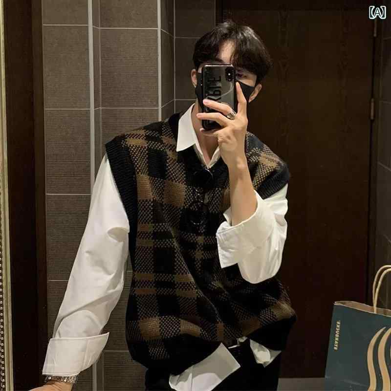生地の分類: ニットパターン: チェック柄襟のタイプ: Vネック服装バージョン:ゆったりタイプ衣類技術: シワになりにくい処理