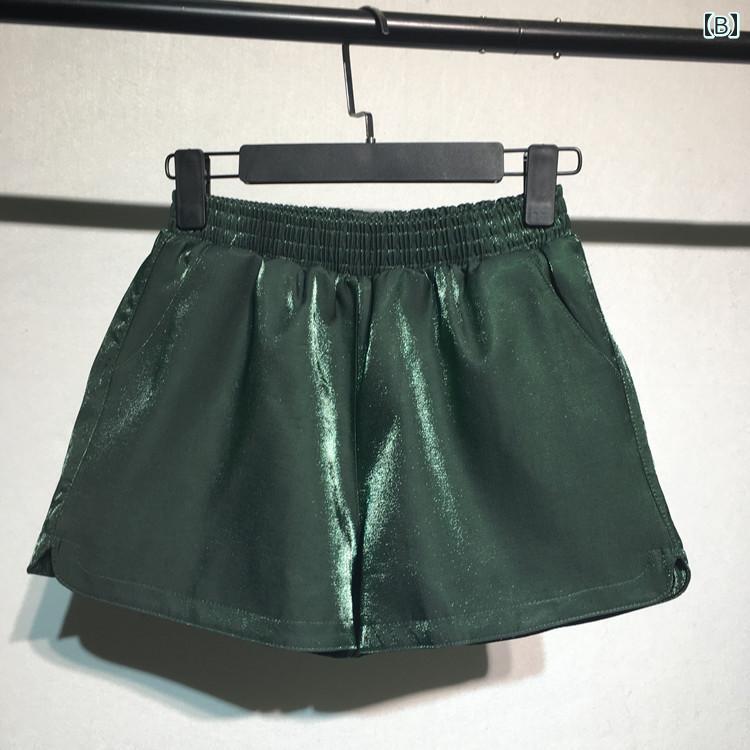 ・サイズ展開: S.M.L.XL・スタイル: スクール・ウエスト: ハイウエスト・カラー展開: ピンク.グリーン.グレー.ブラック.ホワイト.ブルー.カーキ.シルバー.レッド・デザイン特徴: ポケット・パンツ丈: ショート丈・シルエット: ワイド・素材: レーヨン801%.ナイロン199%