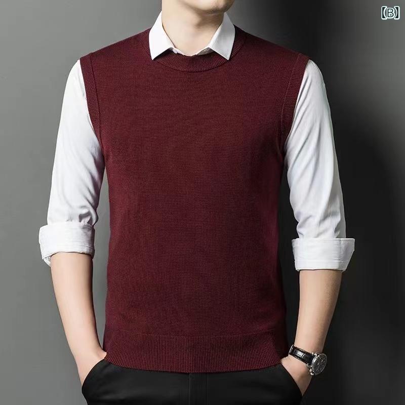 服装シルエット: スリム 加工: 形状記憶加工 裾デザイン: 同素材裾 スタイル: な都会的スタイル 用途: ビジネスカジュアル 素材: ウール 季節: 秋 デザイン: ニットベスト 厚み: 厚手 襟タイプ: ラウンドネック 開閉仕様: プルオーバー 柄: 無地 サイズ展開: M.L.XL.XXL.3XL.4XL カラー展開: ブラック.ネイビー.ライトグレー.ダークグレー.ボルドー.ミディアムグレー