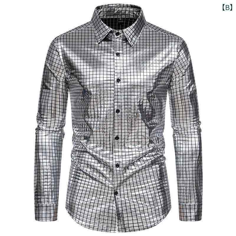 ・カテゴリ: シャツ・スタイル: カジュアル、前開き・主な素材: ポリエステル、綿混・素材含有量: 91%〜95%・機能性: 通気性・糸番手: 20番手・シルエット: ゆったり・ネックライン: 襟付き・袖丈: 長袖・柄: チェック・厚さ: 普通・詳細: 光沢加工・加工: 箔押し加工・着用シーン: パーティー、宴会・対象: 男性・カラー展開: ブラック、シルバー、ゴールド・サイズ展開: S、M、L、XL、XXL