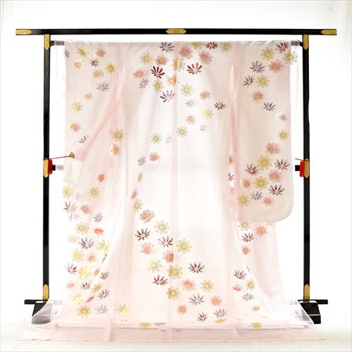 ■オーガンジー素材打掛 [商品説明] やさしいピンク地にグリッターの花々が愛らしいキラキラ感を放すうす衣です。