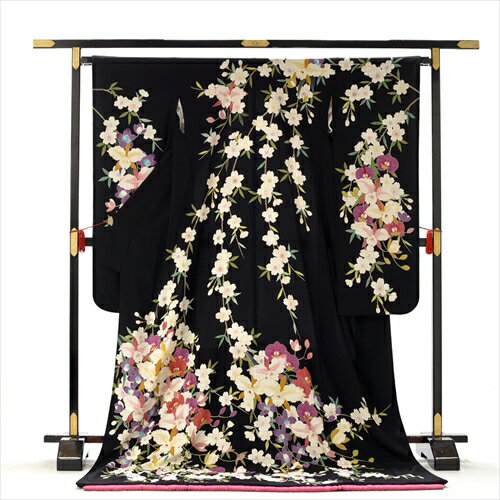 ■身丈:204 裄:69 袖丈:106.5 前幅:24 後幅:29(cm) [商品説明]黒地にあふれんばかりの枝垂れ桜と胡蝶蘭が匂い立つ様な気品と可憐さを放す黒引き振袖です。