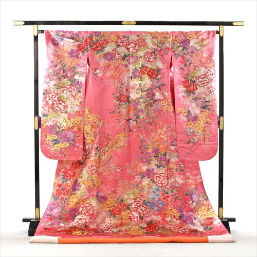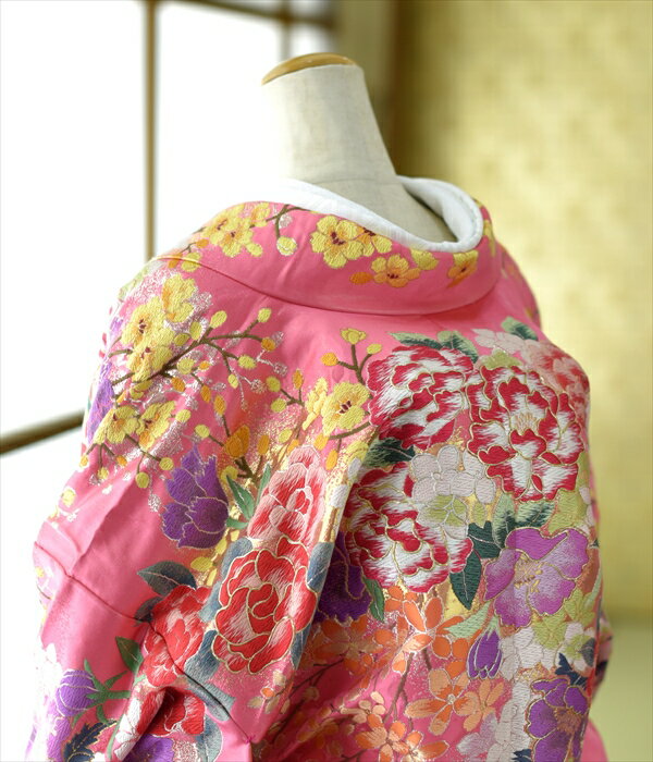 ■緞子 素材打掛 [商品説明] 春めいたピンク地にあふれんばかりのお花が可憐な気品を放す打掛です。