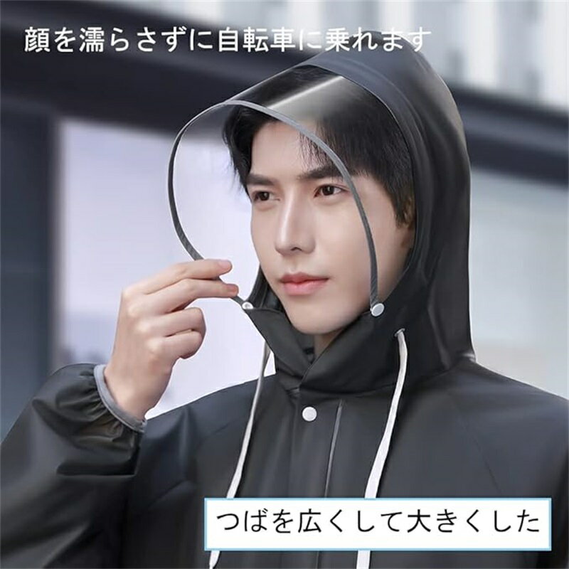 取り外し可能な2層目のレインカバーが付属しており、レインコートのフードに取り付けると、透明な二重のつばが顔を覆い、クリアな視界を確保しながら風や雨から顔を守ります。