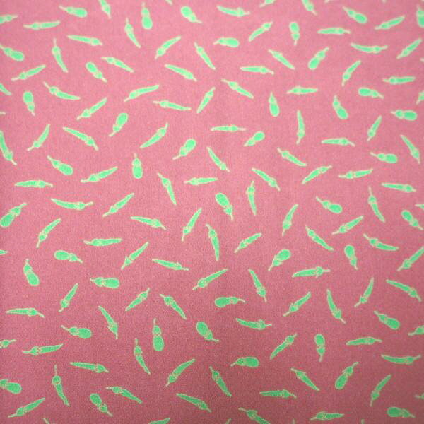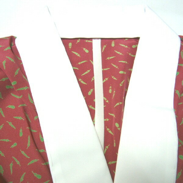 しなやかな薄臙脂色地に、グリーンにてとうがらし模様を染め施しました長襦袢。
