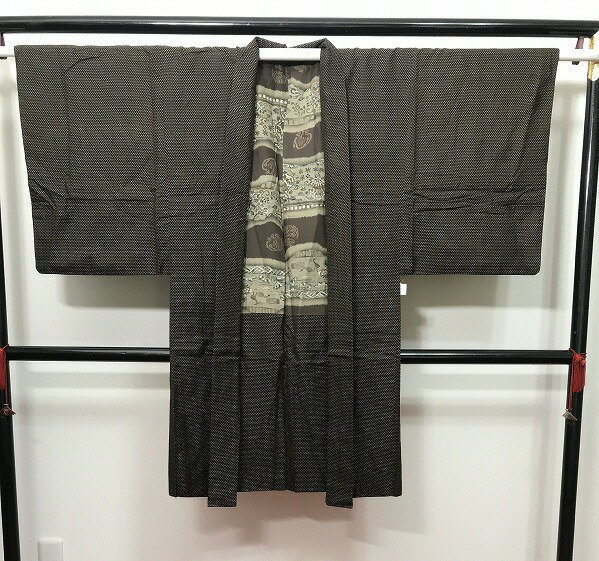 商品説明:さらりとしたこげ茶地に蚊絣文様の織成し 羽織紐は付いておりません サイズ:裄66、身丈106、袖丈53、前幅17、後幅30cm 素材:正絹 状態:ランク3 クスミ有 TPO:普段着等 仕立て:手縫い ※羽織のみの販売となります