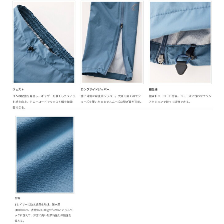 軽くてもタフなレインパンツFEATHER RAIN JACKETとセットアップで着用するレインパンツです。