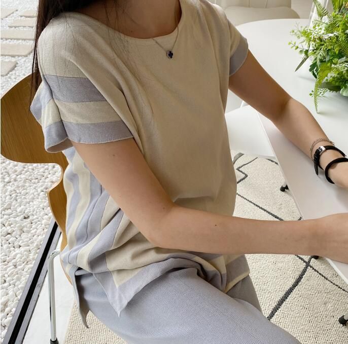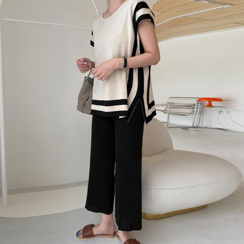 セットアップ トップス ボトムス パンツ カットソー ロングパンツ ワイドパンツ ロング ロング丈 袖あり 半袖 ラウンドネック 襟なし ノーカラー ストレート ワイド バイカラー 配色 上下セット ツーピース シンプル カジュアル おしゃれ お洒落 レトロ こなれ感 ラフ 個性的 抜け感 無地 柄 夏 10代 20代 30代 40代 50代 60代 レディース 女性用 お出かけ 休日 リゾート バカンス 着回し 普段使い 体型カバー#ラウンドネック #セットアップ #ライトブルー #サイズフリー #レディース