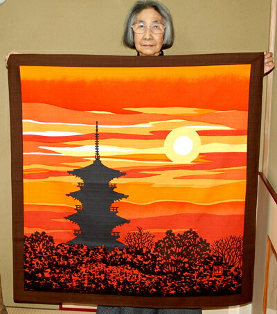 ■サイズ 105cm 楽天国際配送対象商品(海外配送) 詳細はこちらです 縁取は 鳶色(とびいろ・暗い灰みの赤) 絵柄は 緋色(ひいろ・つよい黄みの赤) 黄赤(あざやかな黄みの赤) マリーゴールド(鮮やかな赤みの黄) うすいメイズ(メイズはとうもろこしの実・つよい黄) 消し炭色(けしずみいろ・ごく暗い灰色) 黒 白 東寺は、真言宗東寺派の大本山。