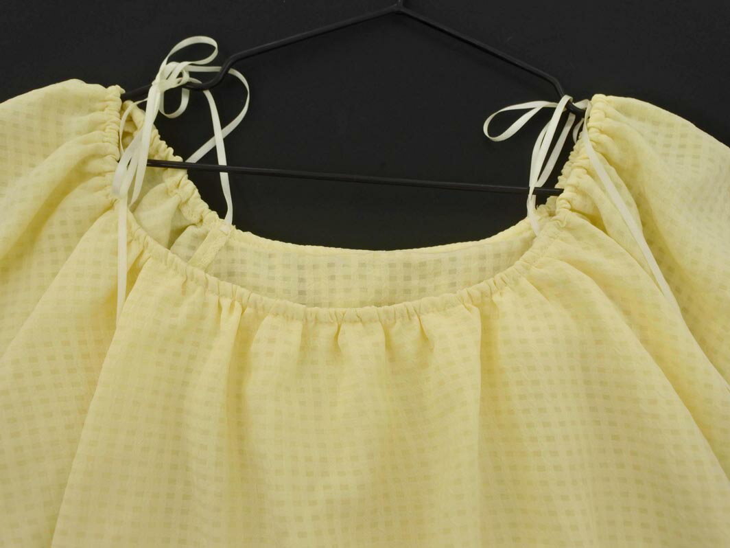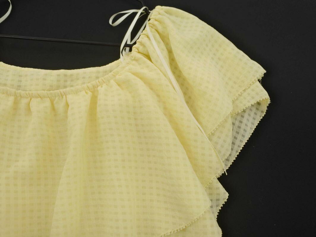表記サイズ:F 実寸サイズ: 肩幅-身幅(脇下)46cm後ろ着丈(襟元より)49cm全長-袖丈19cm 黄 ★素材は画像にてご確認ください。