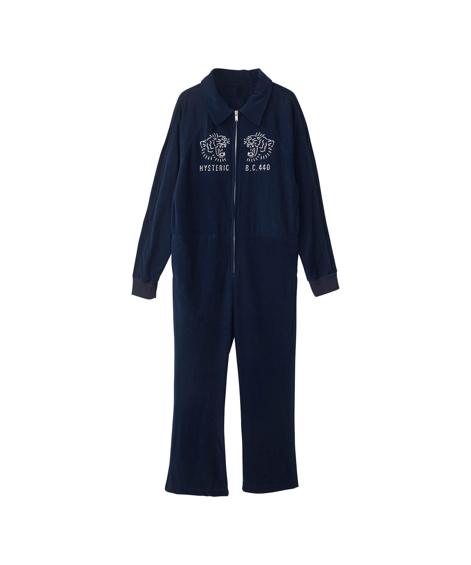 表記サイズ:L 実寸サイズ: 肩幅-身幅(脇下)43cm腰幅-股下61cmワタリ(股下10cm部)31cm裾幅24cm全長137cm 紺 ★素材は画像にてご確認ください。