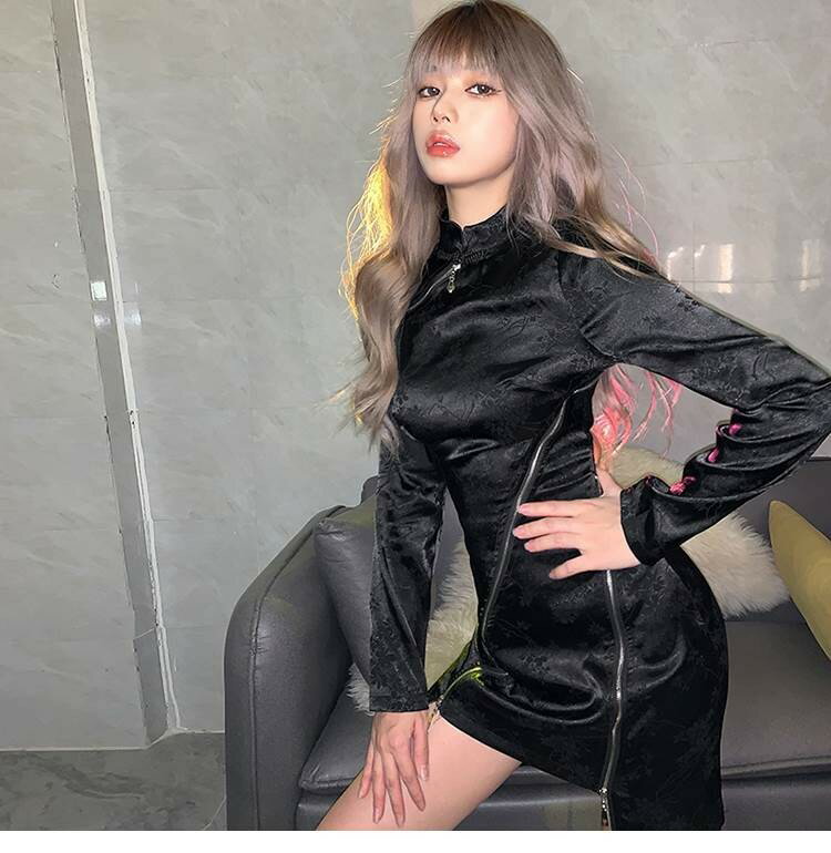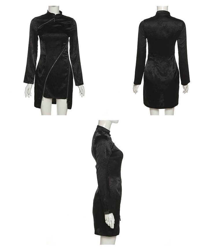 チャイナドレス ミニ タイト 黒 長袖 ドレス 超目玉商品 S M L