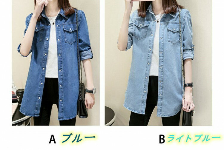 (一部レギンス下着水着等)デニム シャツ レディース チュニック チュニック 続々入荷中 A(ブルー) B(ライトブルー) S M L XL 2XL 3XL