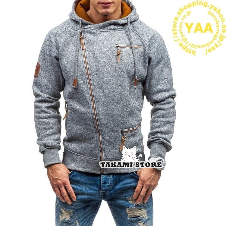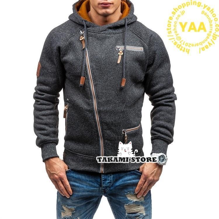 パーカー メンズ おしゃれ スウェット パーカ 長袖 フード付き ジャケット 斜めジッパー アウター 大人カジュアル 春春 3色 30代 40代[素材]綿、ポリエステル[原産国] 中国