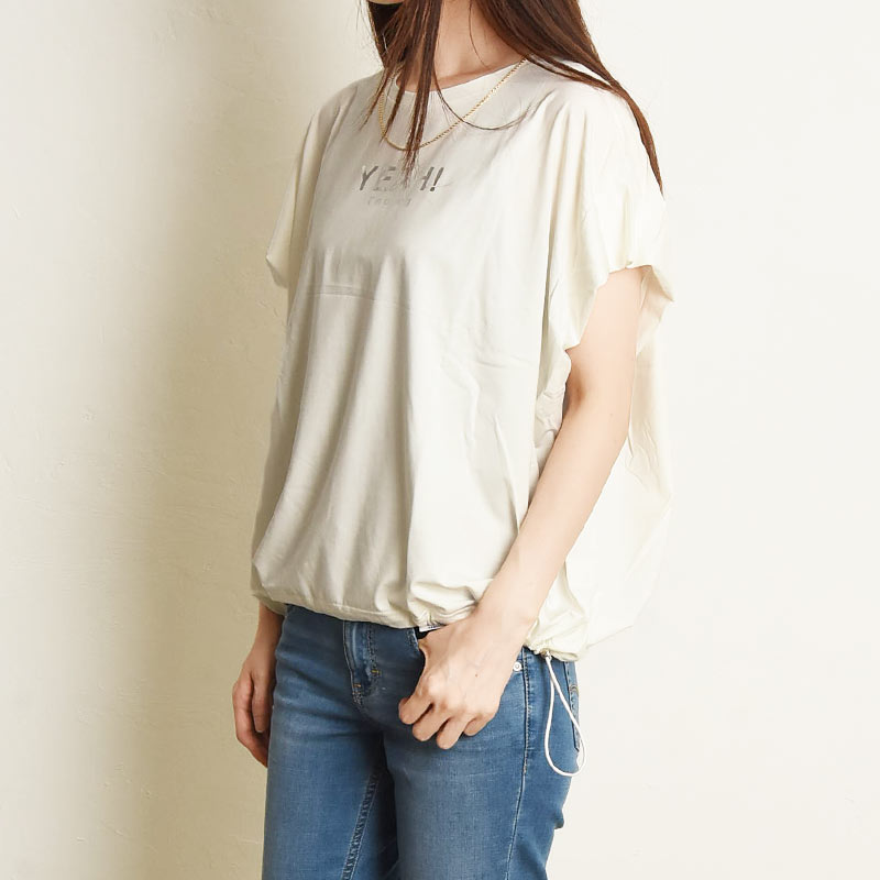ZAMPA(ザンパ) タックショルダー ドロストプルオーバー タックが入った袖がポイント 接触冷感で涼しいドロストプルオーバー ZAMPA(ザンパ)箔プリントロゴとルーズなシルエットが今っぽいドロストプルオーバー。