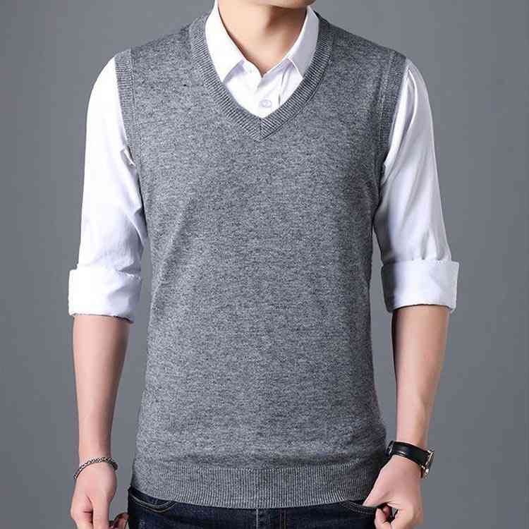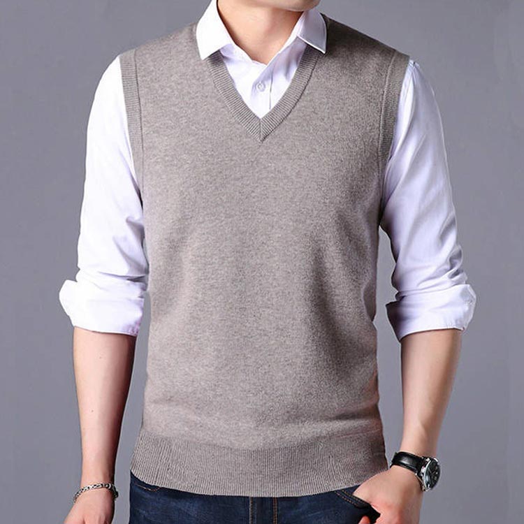 (デザイン)クラシックなスタイルを踏襲した浅いvネック仕様のセーター ベスト。