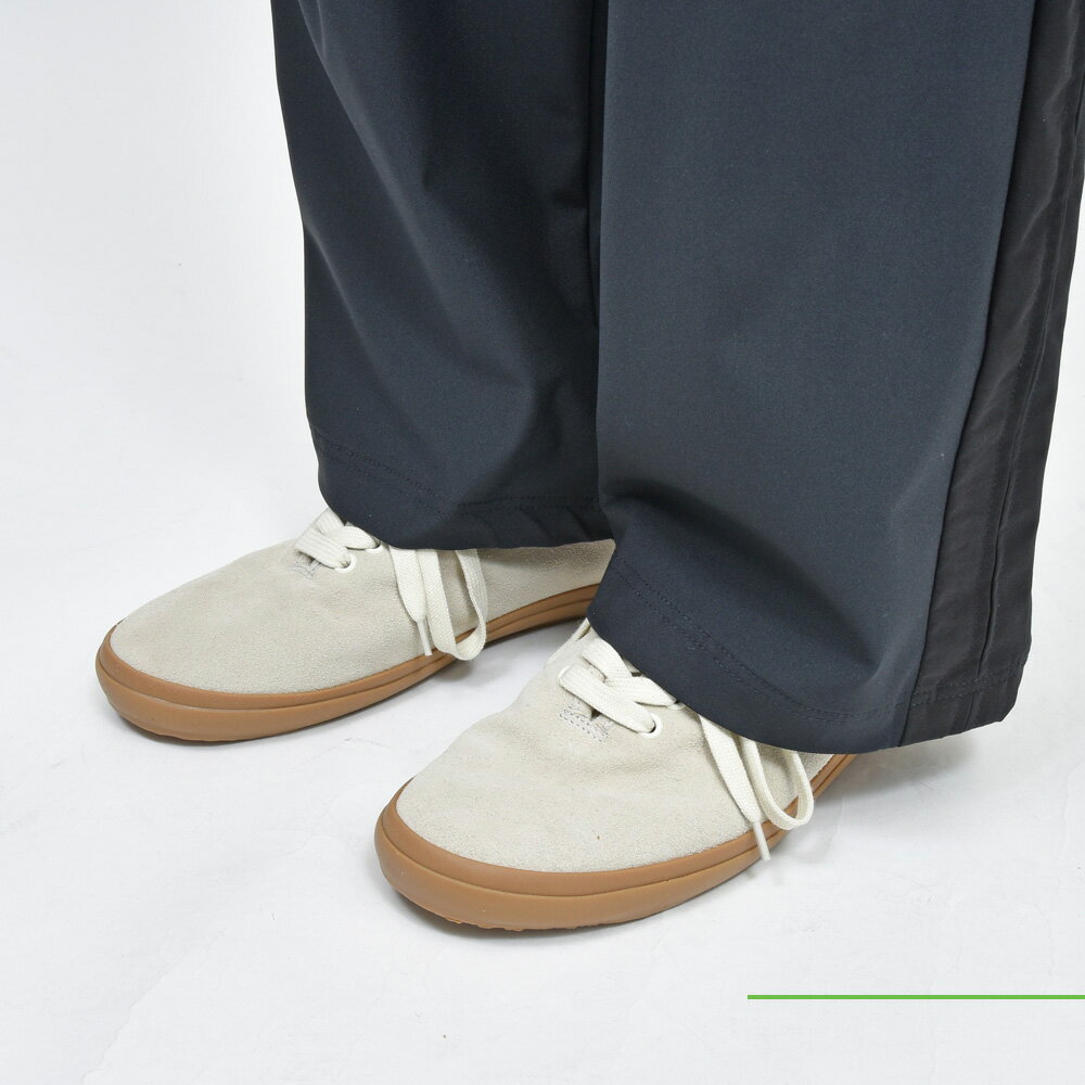 優しい色味にシンプルな構成のスニーカー、ミリタリーベースでありながらも品の良さはキープしている仕上がりに。