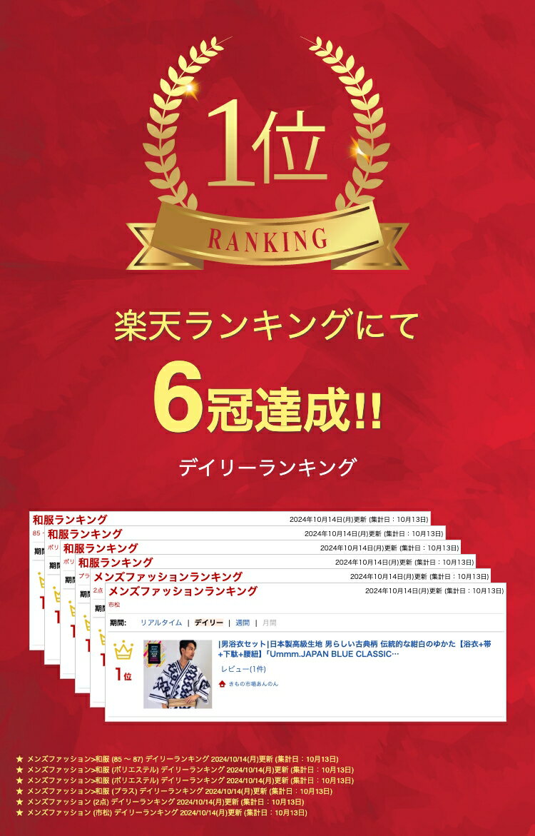 関連商品男浴衣セット 日本製高級生地 男らしい古典柄 伝統的な紺白のゆかた