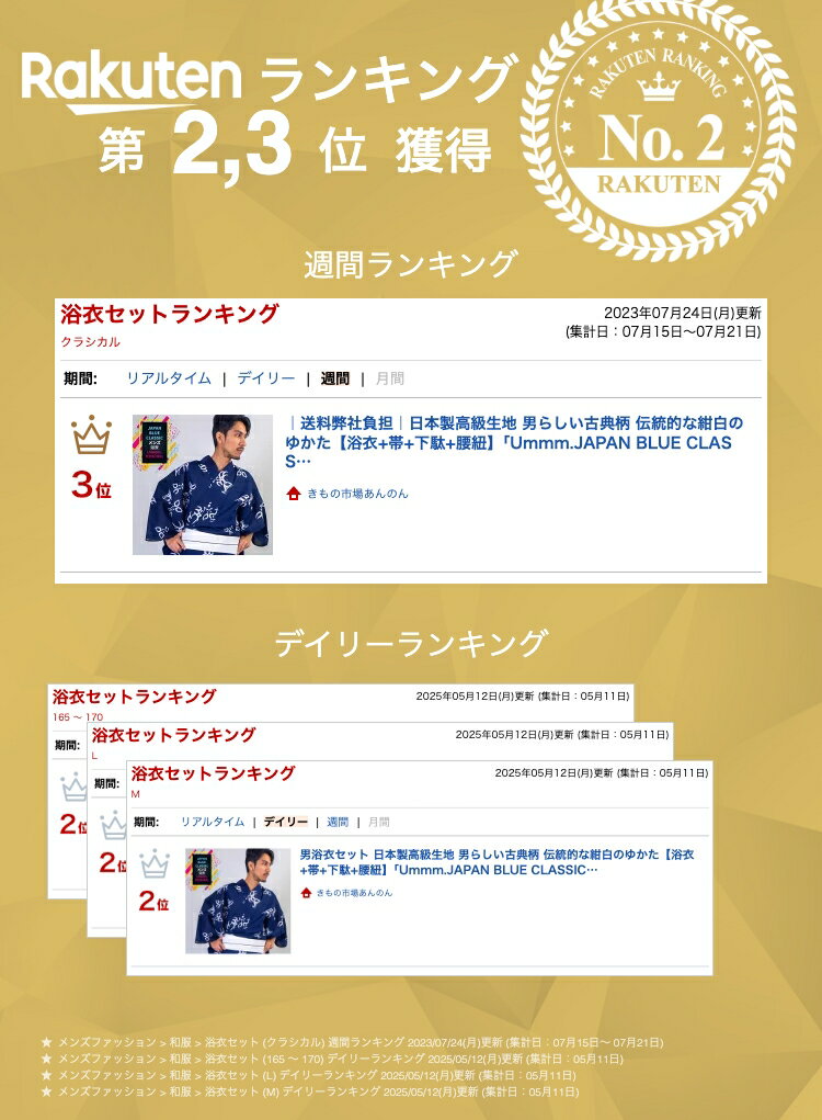 関連商品男浴衣セット 日本製高級生地 男らしい古典柄 伝統的な紺白のゆかた