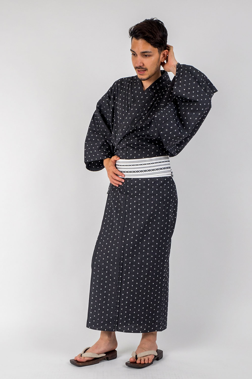 【下駄】桐 (サイズ) 品名 水玉刺繍縞メンズ浴衣 サイズ 浴衣