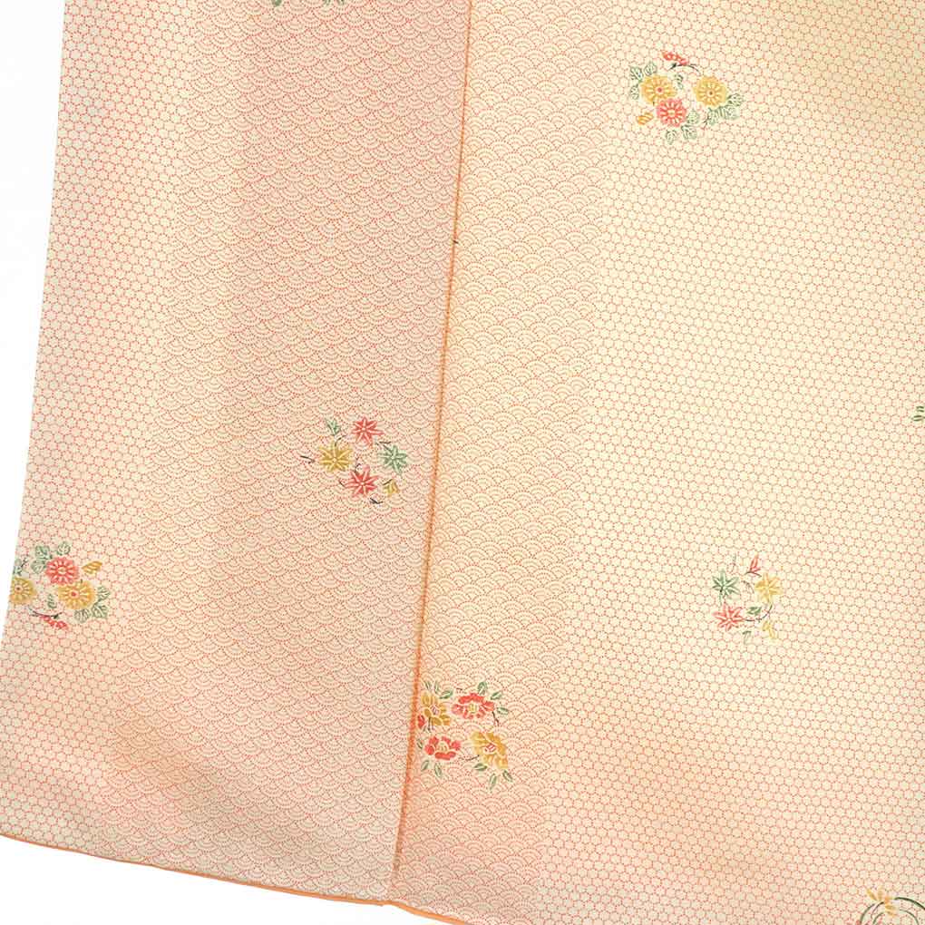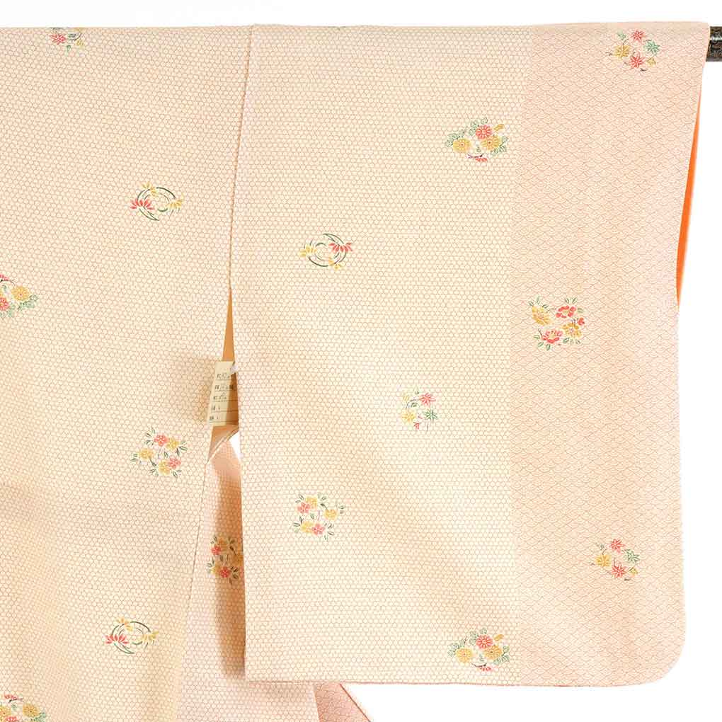 ピンクベージュ地に青海波や花柄でカジュアル用途にお召しいただけます。