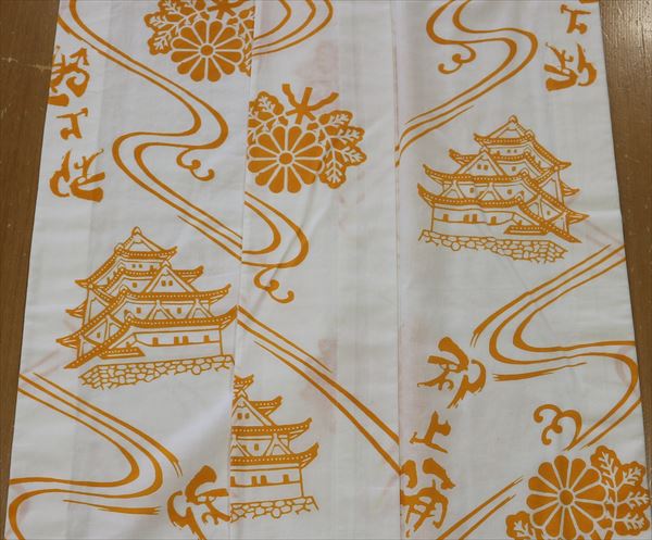 柄は八幡城 葉菊紋 清流吉田川 郡上踊 の文字からなっており 一目見ただけ郡上おどりを象徴するゆかたであることが お分かりいただけます。