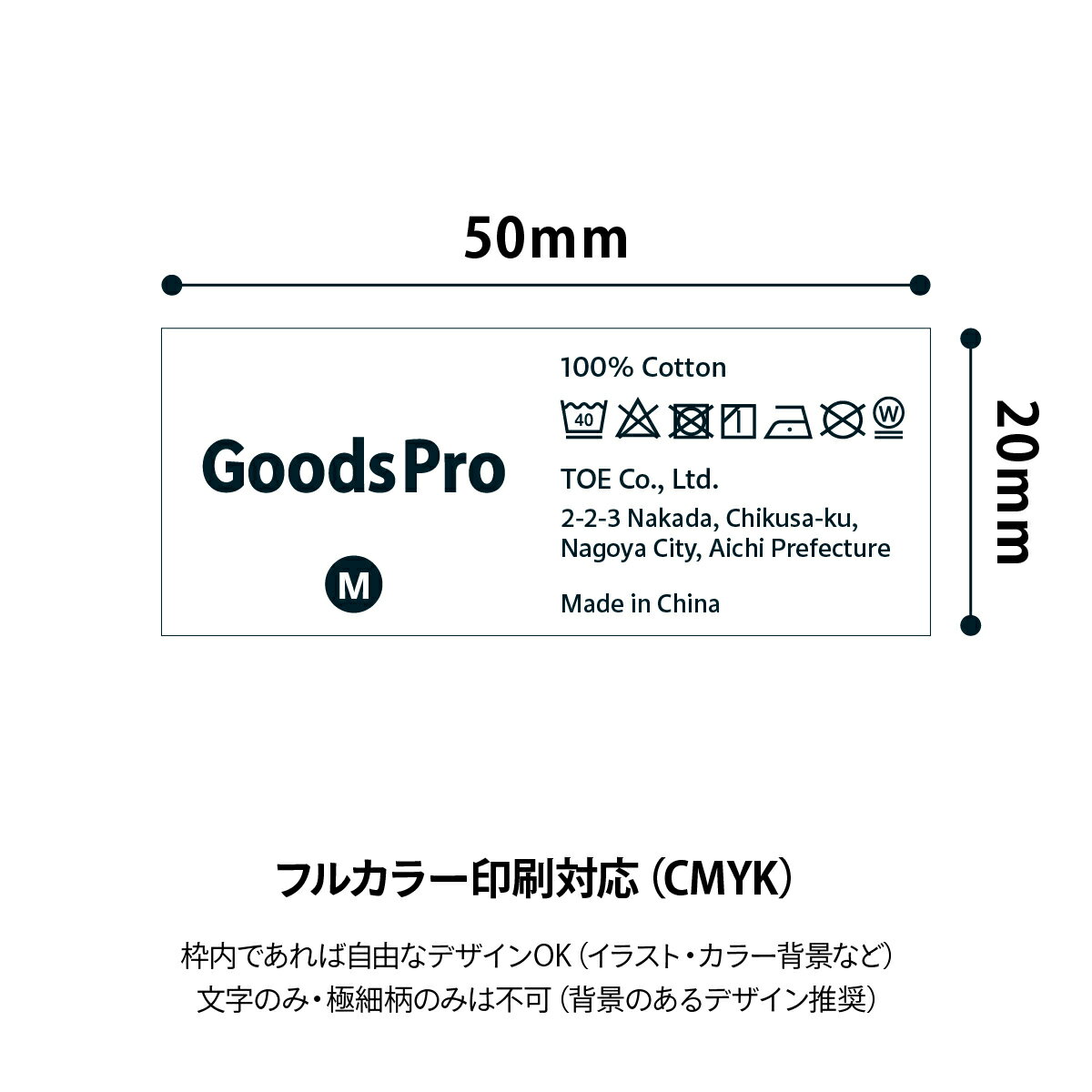 50×20mmの範囲に、屋号・住所・洗濯表示・生産国などを印刷します。