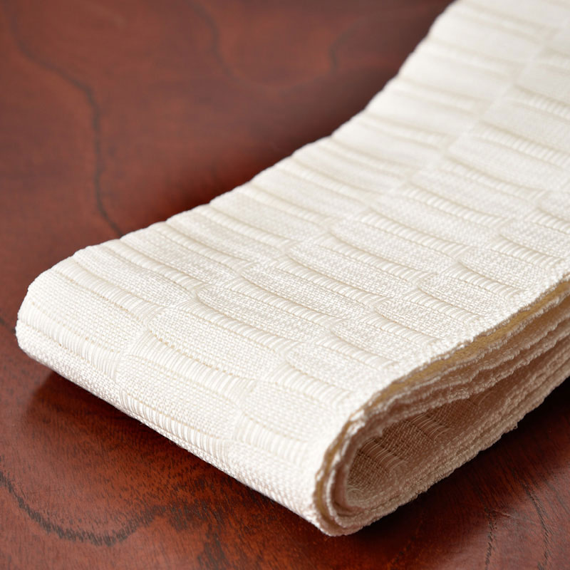 引張り強度が高く、張りとシャリ感があるため、丈夫で崩れにくい帯となっています。