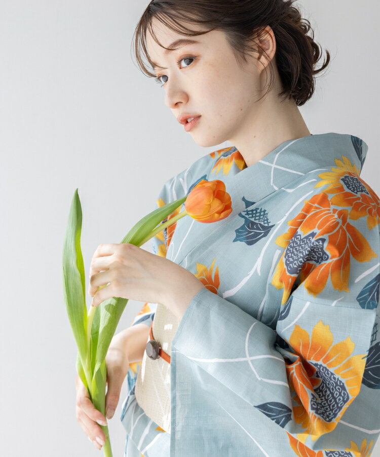 【素材】 浴衣:綿100% 帯:ポリエステル100% 下駄:桐台 腰紐:ポリエステル100%
