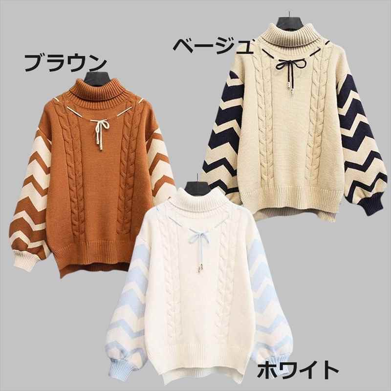 24-05458 3色展開 厚く暖かいタートルネックセーター レディース トップス ニット セーター プルオーバー アウター 長袖 ランタンスリーブ ラウンドネック タートルネック ワイド ストレート フェミニン ふっくら ドロスト ケーブルニット リブニット 伸縮性 バイカラー かわいい 大人可愛い シンプル カジュアル おしゃれ ラフ ガーリー カレッジ風 学生風 爽やか 幾何学模様 秋 冬 10代 20代 OL 学生 通学 アウトドア イベント ショッピング ライブ カフェ