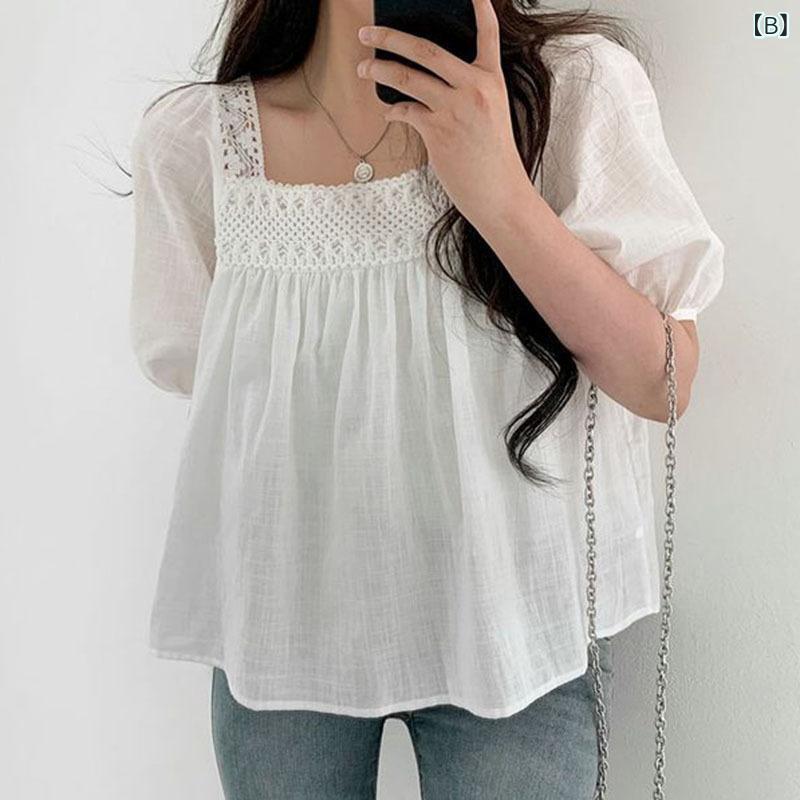 ・カテゴリ: シャツ・スタイル: レトロカジュアル・主な素材: ポリエステル80%〜90%未満・ネックライン: スクエアネック・袖丈: 五分袖・袖タイプ: レギュラー袖・フィット: ゆったり・カラー展開: アプリコット、ホワイト・サイズ展開: S、M、L、XL、XXL