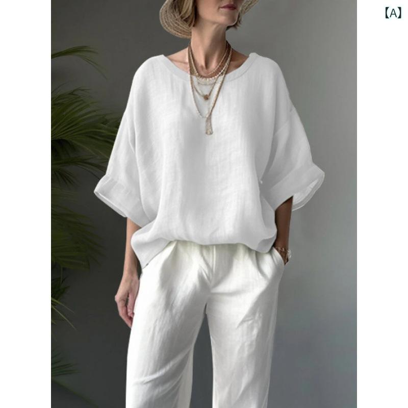 ・カテゴリ: Tシャツ・スタイル: きれいめカジュアル・主な素材: アクリル95%以上・ネックライン: クルーネック・袖丈: 五分袖・袖タイプ: ドロップショルダー・柄: 無地・シルエット: ゆったり・カラー展開: ホワイト、グリーン、ブルー・サイズ展開: S、M、L、XL、2XL、3XL、4XL