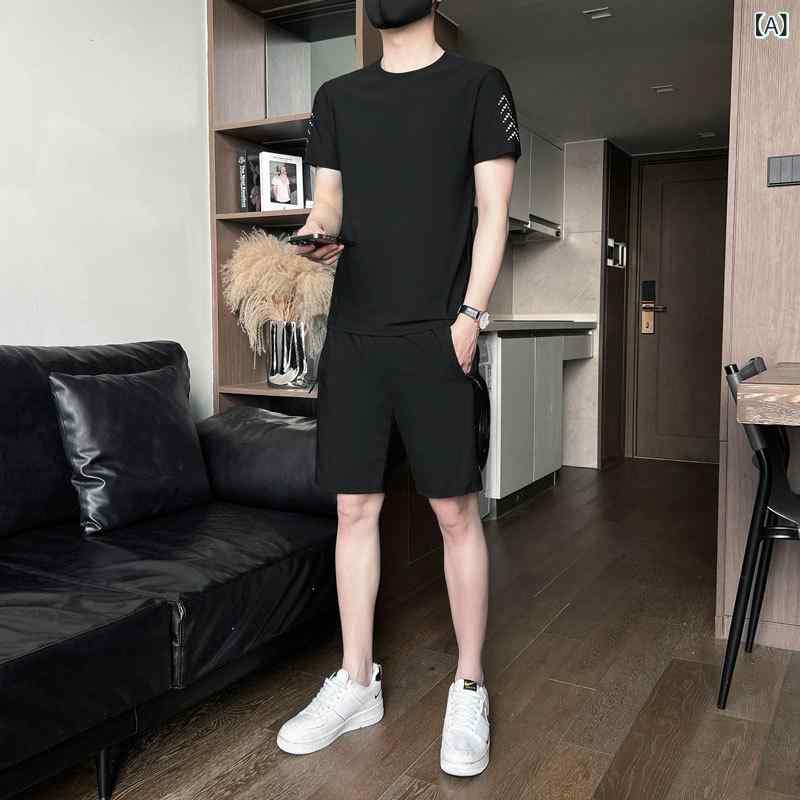 ・カテゴリ: メンズカジュアルセットアップ・スタイル: カジュアル・厚さ: 薄手・パンツ丈: ハーフパンツ、クロップド丈・トップス: Tシャツ・袖丈: 半袖・着用季節: 夏・主な素材: 化繊混紡(ナイロン80%、スパンデックス20%)・着用シーン: 日常・デザイン: シンプル、トレンド・生地特性: 接触冷感、高伸縮性、肌触り良好・カラー展開: ブラック、ホワイト、ブルー、グレー、ピンク・サイズ展開: M、L、XL、2XL、3XL、4XL、5XL、6XL、7XL