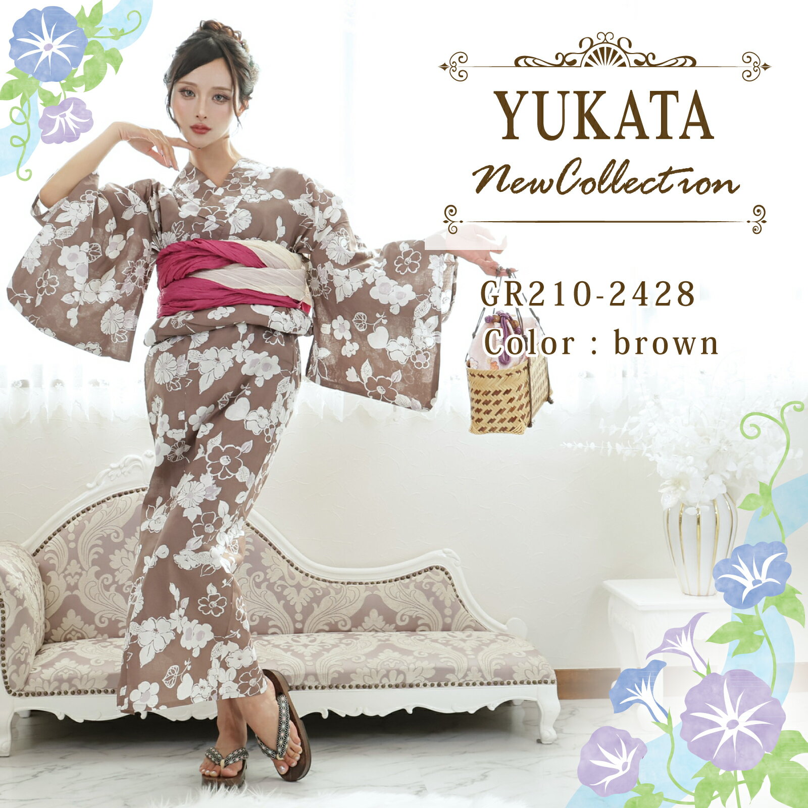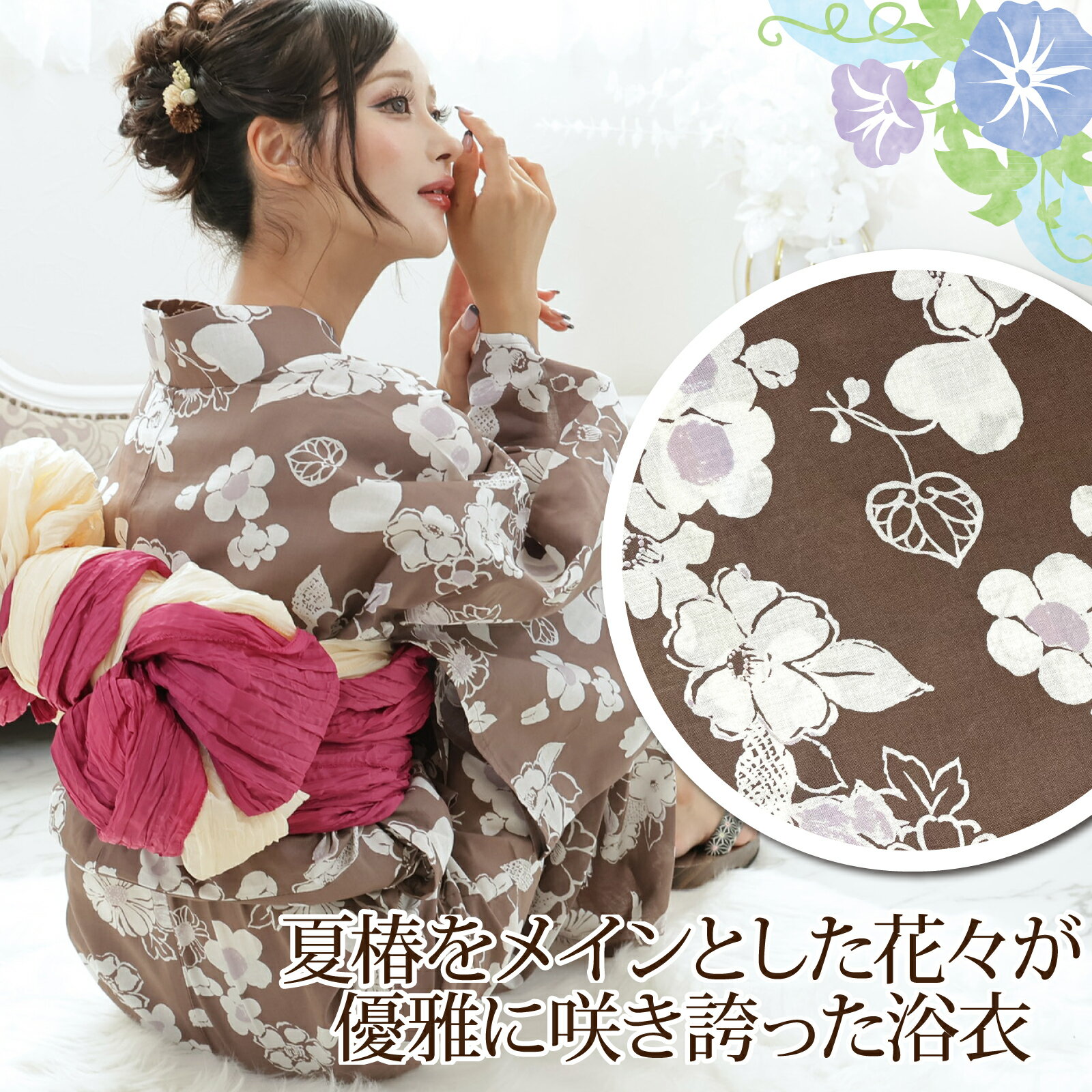 ■カラーブラウンサイズフリーサイズセット内容浴衣、兵児帯(クリーム色×1)、下駄 3点浴衣素材綿100%帯素材ポリエステル100%下駄素材鼻緒:綿、台:桐、底:EVA参考モデルサイズモデル身長161cm注意事項