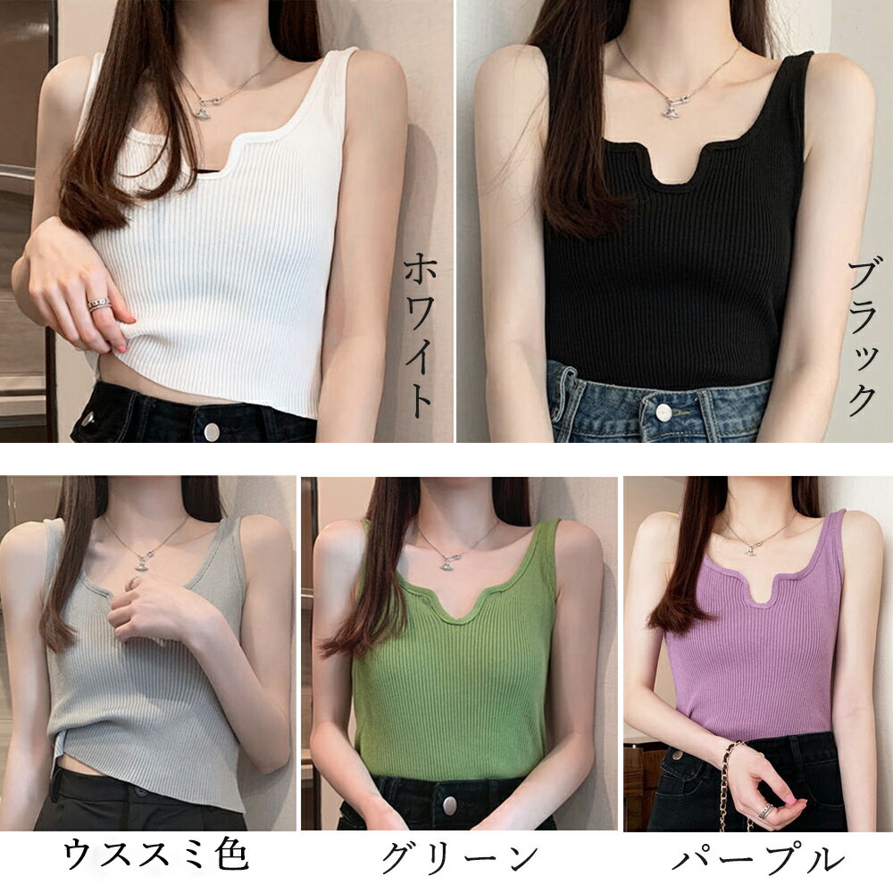 ショート丈トップス セクシー リブニット Uネック 着回し ニットソー 大人カジュアル デコルテ韓国ファッション インナー おしゃれ フィット感 重ね着Uネックデザインで首回りを綺麗に魅せられるタンクトップ伸縮性のある素材なので体にフィットし美しいボディーラインを引き立てくれるアイテムスタイルを選ばず、どんなコーデとも相性抜群素材:ポリエステル85%+ポリウレタン15%カラー:ホワイト/ブラック/ウススミ色/パープル/グリーンサイズ:ワンサイズ総丈:約42cm 肩幅:約32cm 身幅:約30cm 胸囲:約60-90cm裏地:なし伸縮性:あり透け感:ホワイトのみややあり