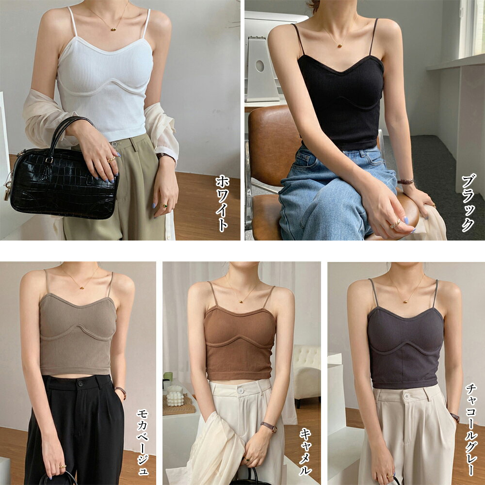 重ね着 インナー ノンワイヤーブラトップ セクシー無地 リラックス 楽ちんナイトブラ ショート丈タンクトップ韓国風リブキャミ 春夏 キャミヨガ シンプルベアトップ細めの肩ストラップが垢抜けた印象のカップ付きキャミソール肌触りの良いリブ生地を使用、さらっと着られる軽やかな着心地、お家でのリラックスタイムにもおススメ程よくスッキリしたショート丈でハイウエストボトムスとの相性が抜群、無地なので着回しも高く差し色アイテムとしても使えるスマートな1枚素材:ナイロン80%+ポリウレタン20%カラー:ブラック/ホワイト/キャメル/モカベージュ/チャコールグレーbr>サイズ:ワンサイズ着丈:約35cmトップバスト:約63-90cmアンダーバスト:約60-90cmワイヤー:なしカップ:あり裏地:前身頃のみあり伸縮性:あり透け感:なし生産国:中国