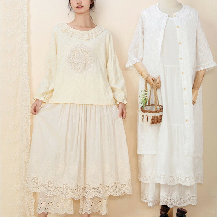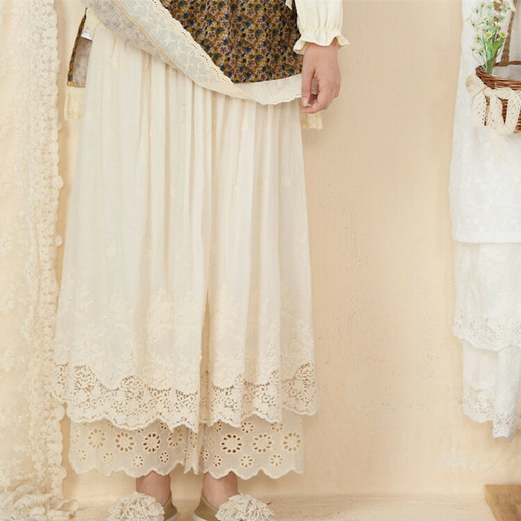 インスタ映え レディース 透かし彫り 刺繍 キュロット sweet系【素材】コットンカラー:ホワイト,ブラック,べージュサイズ:スカート着丈:約80cm パンツ着丈:約89cm ヒップ:約120cm ウエスト:約62-102cm※サイズについては2-3センチの誤差があります。
