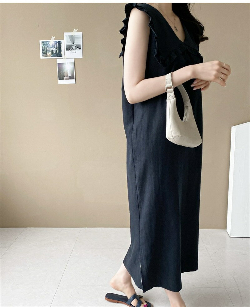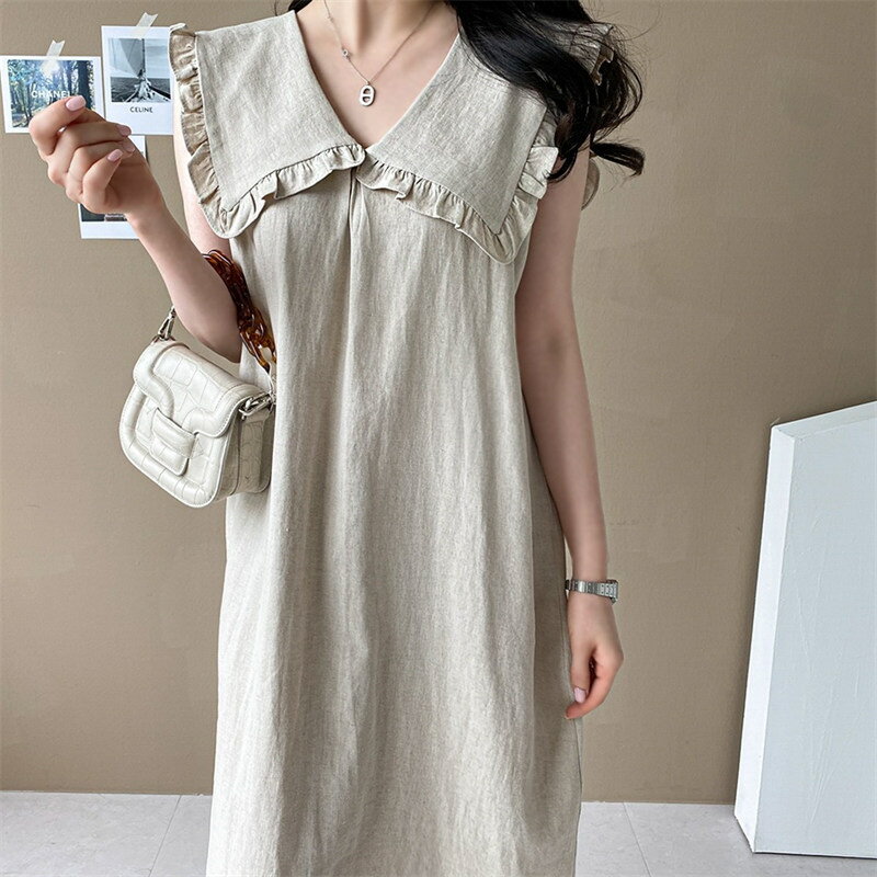【素材】綿とリネン【サイズ】フリーサイズ:着丈:112cm バスト:46cm ウエストまわり:47cm ※サイズについては2-3センチの誤差があります。 ■採寸の仕方によってサイズが異なる場合がございますので予めご了承ください。サイズは平置きサイズです。素人採寸ですので、若干の誤差がございます、ご了承ください。
