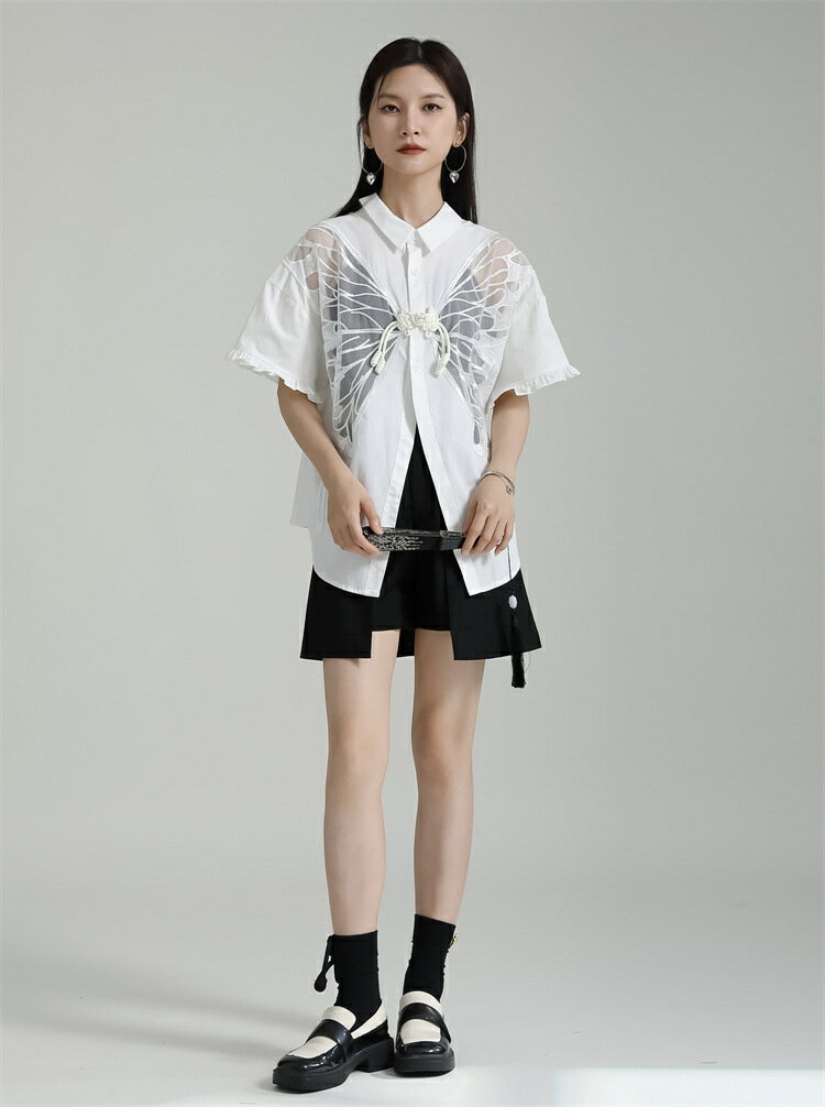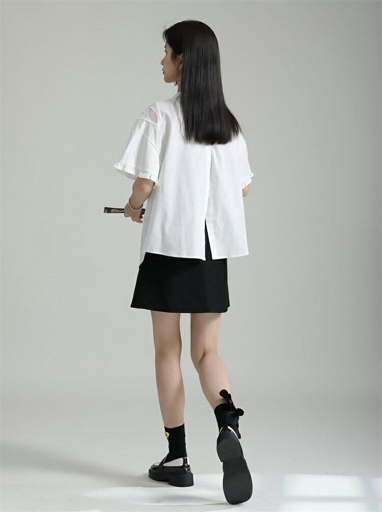 半袖シャツ 2023 上着 デザインセンス おしゃれな スリム【素材】ポリエステル コットン【カラー】ホワイト,ブラック"サイズ:着丈:約59cm 袖丈:約15cm 肩幅:約57cm バスト:約112cm ■平置き採寸の為、若干の誤差が生じる場合がございます。予めご了承下さい。"