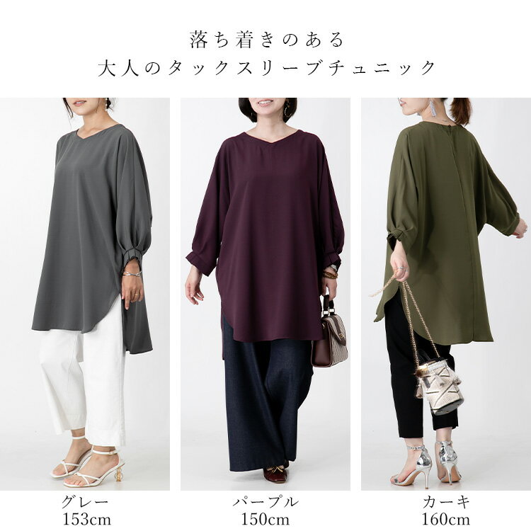 落ち着きのある大人のタックスリーブチュニックです。